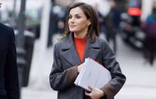Para esta ocasión, doña Letizia optó por un estilo working girl formado por abrigo y falda de Hugo Boss en degradé y rayas horizontales gris y naranja que combinó con unos salones de tacón ancho en color camel y clutch a juego de la misma firma alemana. Un conjunto que ha repetido ya en varias ocasiones, incluyendo los complementos, lo que demuestra que es uno de sus favoritos y con los que más cómoda se siente para acudir a las reuniones de trabajo, a pesar de las bajas temperaturas.
