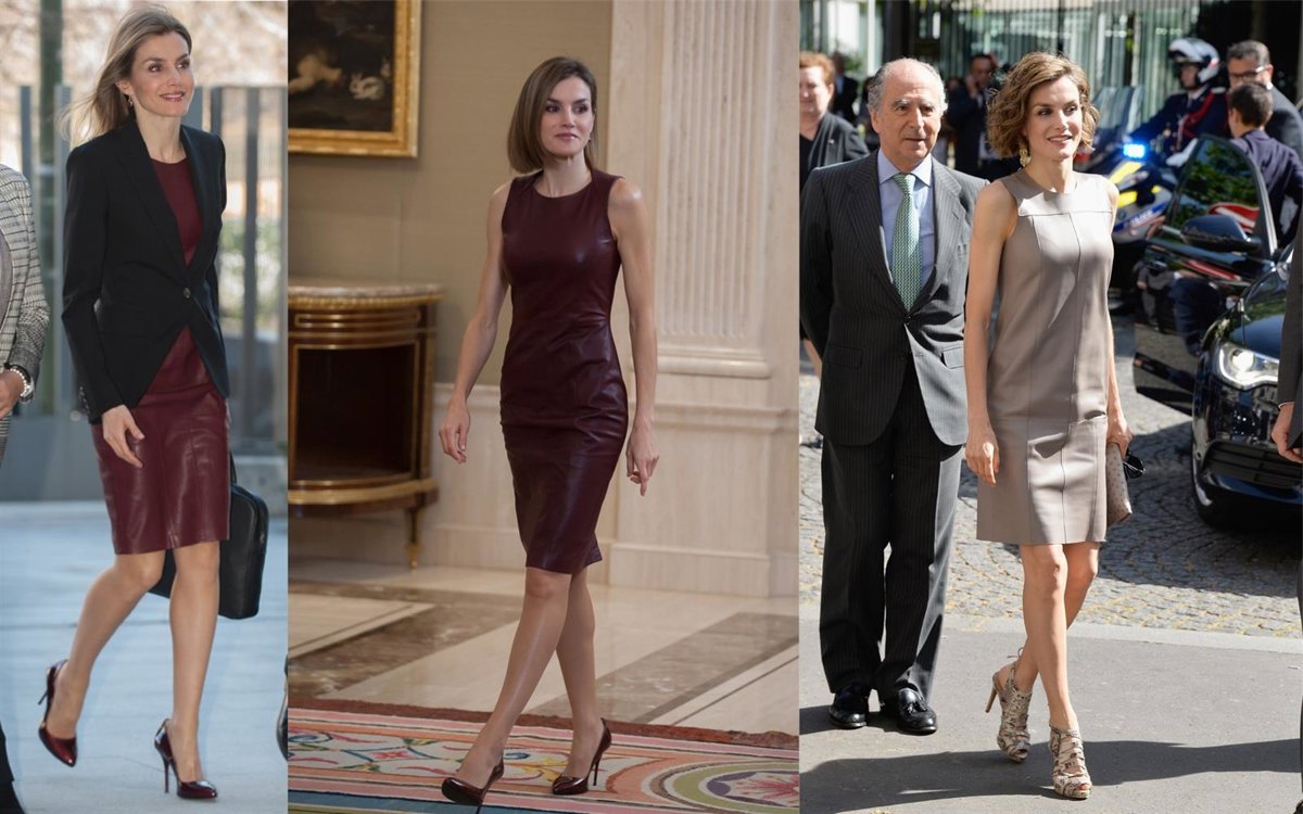En esta audiencia, Doña Letizia se ha decantado por un vestido de cuero 'reciclado' de Hugo Boos en tono burdeos de este pasado otoño/inverno que ha lucido ya en otras ocasiones. Lo llevó también a la reunión que presidió en febrero del Consejo del Real Patronato sobre Discapacidad y más tarde su visita oficial a Vienna.