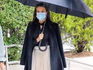 Bajo la lluvia, y en compañía de Reyes Maroto, Ministra de Industria, Doña Letizia está haciendo entrega, en estos momentos, del Premio Honorífico al diseñador Custo Dalmau, y a la firma Bimba y Lola, por su contribución a la moda española.