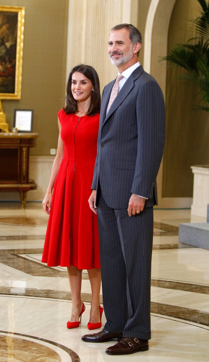 Horas más tarde también los Reyes recibieron a la Selección en el Palacio de la Zarzuela y es que incluso doña Letizia tuvo un detalle de lo más especial con los jugadores apostando por un vestido midi en color rojo de Carolina Herrera a juego con los zapatos. De lo más cómplices con los jugadores, don Felipe y doña Letizia se mostraron muy interesados por la Copa del Mundo y es que posaron en la foto de familia junto al resto del equipo.