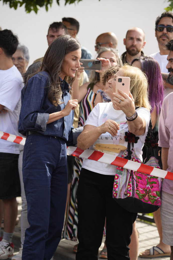 Tras apostar por un perfil discreto estilísticamente hablando en su visita a Castilla León -donde lució un pantalón slim en color caqui y una camisa blanca-, y a Galicia -con unos pantalones cargo en beige y una camisa blanca muy similar al de la jornada anterior-, la Reina ha escogido un look en clave casual sencillamente ideal, y de máxima tendencia, en la última parada de su 'minigira' por España para mostrar su apoyo a la población de las localidades más afectadas por los incendios forestales.