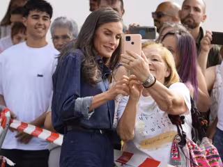Cómoda a la par que estilosa, Doña Letizia ha sorprendido en su paso por Extremadura con un total look dénim compuesto por una camisa vaquera de corte clásico -aunque le ha dado su toque personal con las mangas ligeramente remangadas-, y unos jeans rectos, que ha complementado con unos botines de tacón cuadrado de piel marrón.