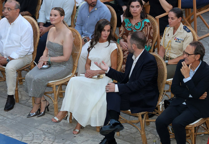 Sin la compañía de ninguna de sus hijas, con las que sí acudía hace tan solo unos días al cine para disfrutar de una de las películas del Festival en el Cine Rípoli, doña Letizia sí que contaba con la compañía de otras autoridades de la isla como la presidenta del Govern, Marga Prohens; la secretaria de Estado de Turismo, Rosario Sánchez; el delegado del Gobierno, Alfonso Rodríguez; el presidente del Consell de Mallorca, Llorenç Galmés, y el alcalde de Palma, Jaime Martínez.
