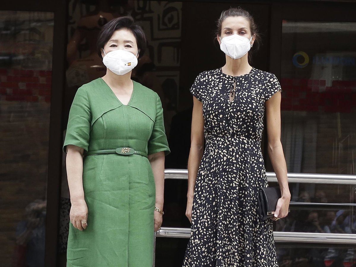 Continuando con su frenética agenda, este miércoles Doña Letizia ha visitado la sede de la Fundación Once junto a la primera dama coreana, presumiendo de complicidad con Kim Jung-Sook y destacando una vez más por su elegancia y espectacular figura, que no han dudado en destacar los medios de comunicación asiáticos, impactados por la belleza de nuestra Reina.
