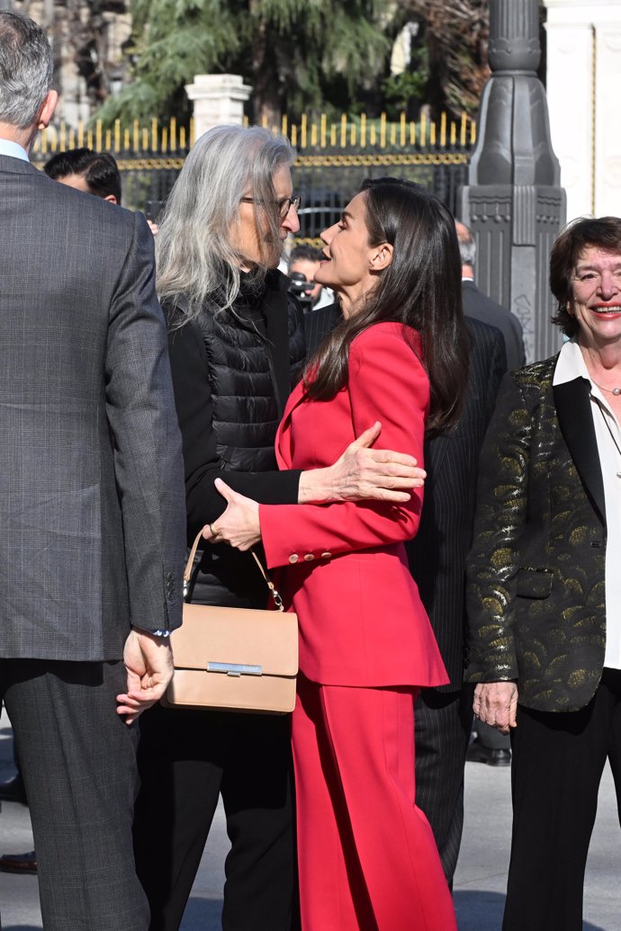 Una jornada inolvidable en la que la madre de la Princesa Leonor ha escogido un look en su color fetiche, deslumbrando con un impecable traje sastre rojo de Carolina Herrera que ya le hemos visto en otras ocasiones y que realza su figura gracias a su americana entallada con hombreras marcadas. Lo ha combinado con top, bolso de asa corta y zapatos de tacón sensato en color cámel, apostando así por uno de los binomios que más veremos esta primavera.