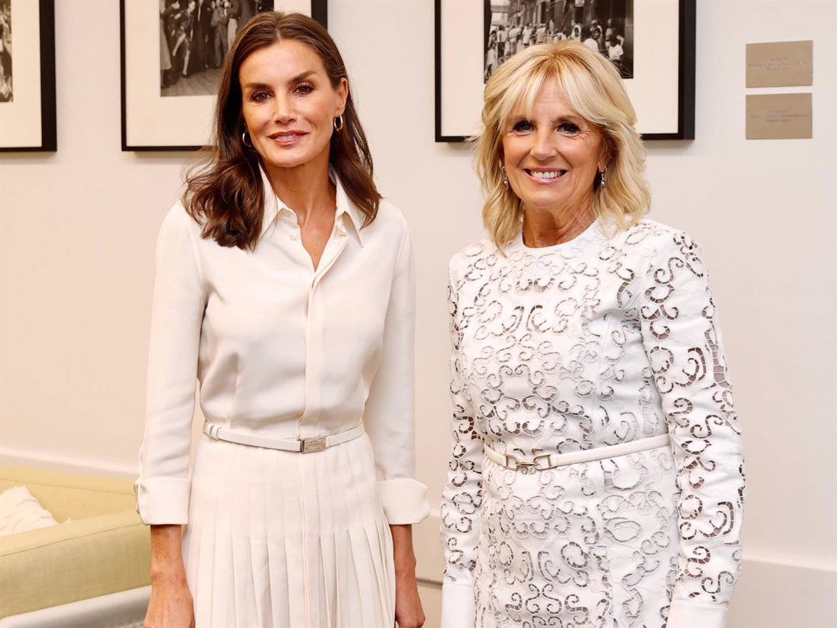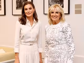 Durante su esperado cara a cara con Jill Biden - en el que por cierto ambas han vestido de blanco impoluto - las hemos visto conversando amigablemente y visitando una exposición de paneles sobre la investigación contra el cáncer, tema en el que tanto nuestra monarca como la primera dama están completamente volcadas.