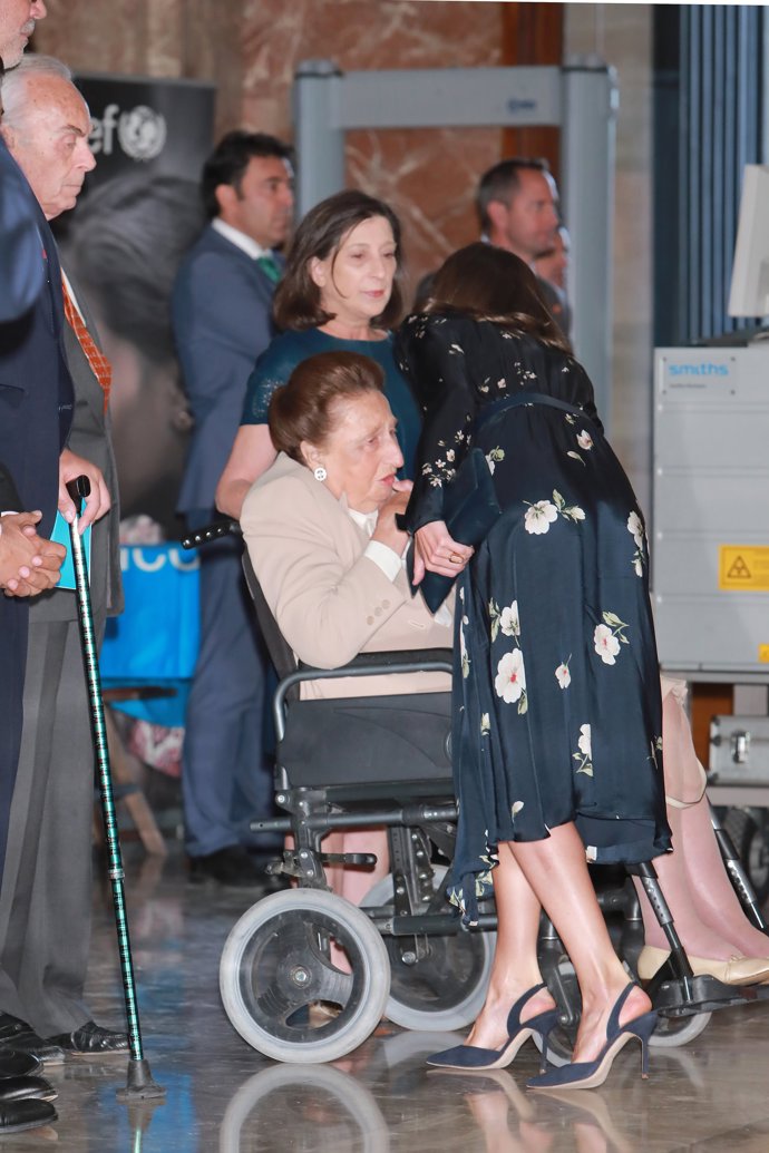 Durante el acto Doña Letiza ha coincidido con la tía de su marido, la infanta Margarita, Presidenta de Honor de UNICEF. Su Majestad ha acudido a saludar a la infanta con cariño, quien no ha podido evitar mostrar su afecto besando la mano de su sobrina política y mostrando muy buena síntonia entre ambas. También ha estado presente Carlos Zurita.
