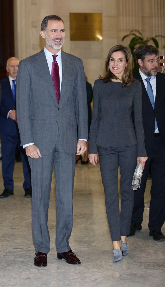 Gracias a su presencia, los Reyes muestran una vez más su apoyo a la institución fundada en el 1711. Para esta ocasión, la Reina Letizia ha escogido un perfecto look working girl. Doña Letizia ha rescatado de su armario un traje de Hugo Boss gris que le hemos podido ver en otras ocasiones.