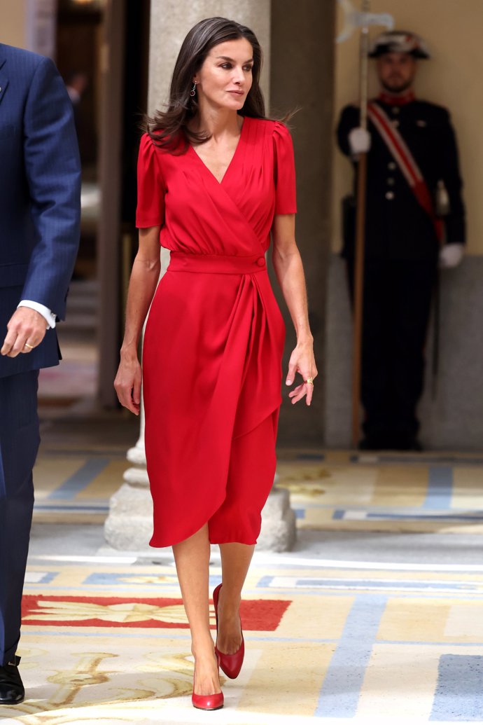 La Reina Letizia - ya sin mascarilla - ha lucido un elegante vestido rojo, color que no duda en escoger en acontecimientos relacionados directamente con el deporte y con nuestros deportistas, al igual que muchas de las invitadas.