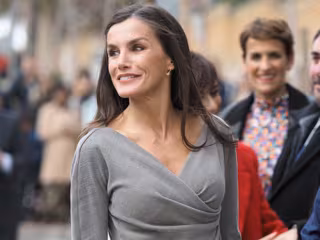 Una reaparición en la que Doña Letizia ha vuelto a dar una lección de elegante con un favorecedor vestido midi en color gris con escote cruzado, manga larga y bajo deshilachado. Un diseño moderno y con un toque muy sexy que ha combinado con botas altas de piel negras de Nina Ricci y su canosa melena suelta y ligeramente ondulada.
