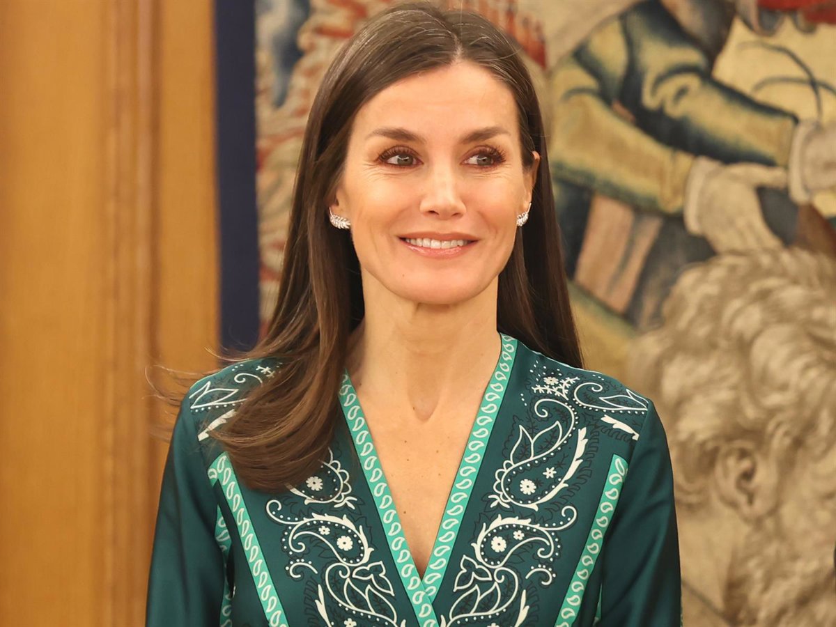 Un look impecable y a juego con el Rey Felipe VI, con una corbata en uno de los verdes del vestido del que, por muchas veces que se lo hayamos visto, ni nos cansamos nosotros ni se cansa Doña Letizia.