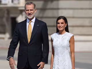 Sus Majestades han recibido con honores en el Palacio Real al presidente de Colombia, Gustavo Francisco Petro, y la primera dama, Verónica Alcocer, que se encuentran de visita Oficial en España. Un acto que ha tenido lugar en el Patio de Armas y en el que ha reinado la cordialidad y la cercanía entre ambos matrimonios, y en el que Doña Letizia ha vuelto a dar una lección de estilo y elegancia con su primaveral elección.