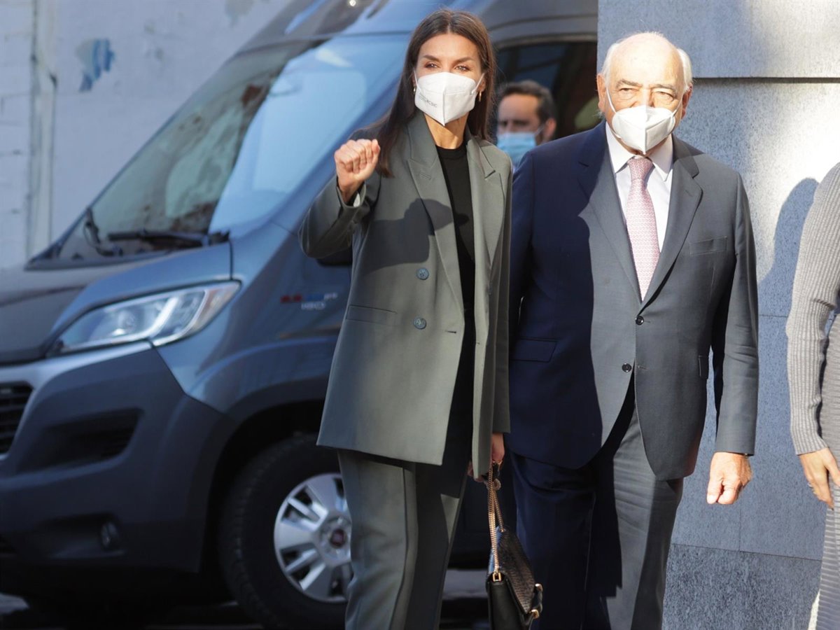 Un acto de claro corte profesional para el que la Reina se ha puesto 'su uniforme de trabajo' favorito: uno de los trajes sastre que conforman su colección y que cada vez luce más a menudo, 'desterrando' las faldas en este tipo de reuniones, en los que opta por el 'look work' del que ya es toda una maestra.
