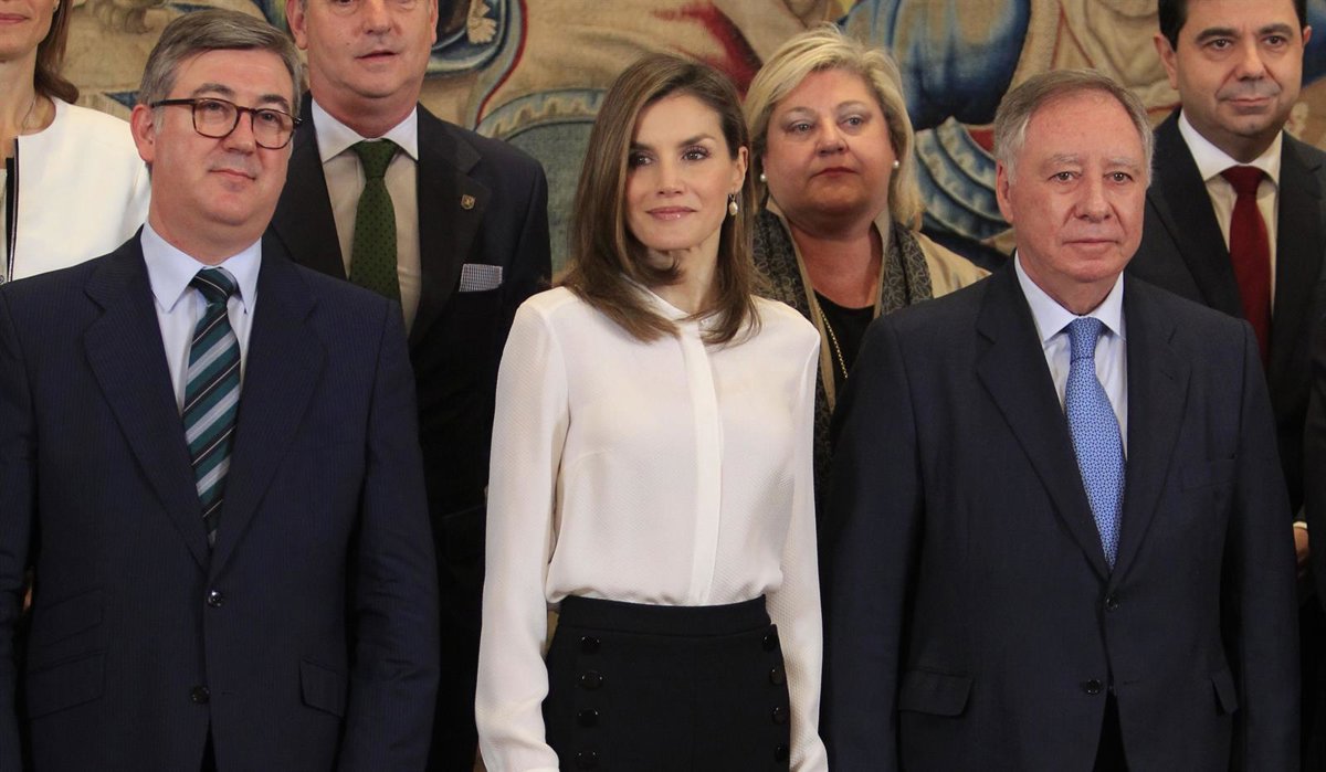 La esposa de Felipe VI ha recibido esta mañana a una representación de los organizadores del Salón Internacional del Estudiante y la Oferta Educativa "Aula", y después a los representates del Club Estudiantes SAD y a su fundación. Una audiencia donde la Reina ha vuelto a mostrar su lado más maternal.