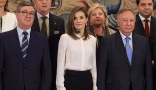 Para este acto celebrado en el Palacio de la Zarzuela, Doña Letizia ha apostado una vez más por rescatar de su armario alguna prenda que tenía olvidada.
