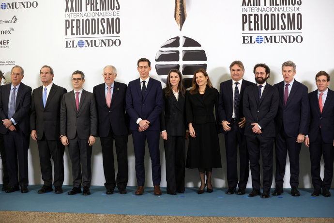 Doña Letizia se ha desplazado a la Real Academia de Bellas Artes de San Fernando, en el corazón de Madrid, para presidir la entrega de la XXIII edición de los Premios Internacionales de Periodismo de "El Mundo", que en esta ocasión han reconocido a Emma Tucker, directora de The Wall Street Journal -Premio a la Mejor Labor Periodística-, y a Laurent Richard, presidente del consorcio periodístico Forbidden Stories -premio a la Libertad de Prensa- por representar los valores fundamentales de la profesión: valentía y rigor.