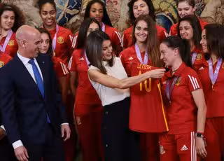 La Reina Letizia ha recibido al equipo de la Selección Española Femenina Sub-17 y ha sacado su lado más futbolero para recibir a las jóvenes en el Palacio de la Zarzuela. Las jugadoras el pasado mayo ganaron el Campeonato de Europa tras vencer a Alemania.