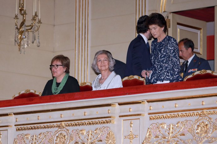 Cumpliendo con su agenda oficial en solitario, la Reina Doña Sofía presidió el acto y concierto de clausura del curso académico 2018-2019 de la Escuela Superior de Música Reina Sofía. Con un traje de dos piezas con falda y chaqueta en color gris perla, la reina emérita entregó los diplomas a los alumnos y las distinciones de la institución. A su llegada al Teatro Real de Madrid, fue recibida por la presidenta de la Escuela Superior de Música Reina Sofía, Paloma O'shea, y por el director general del Teatro Real, Ignacio García-Belenger.