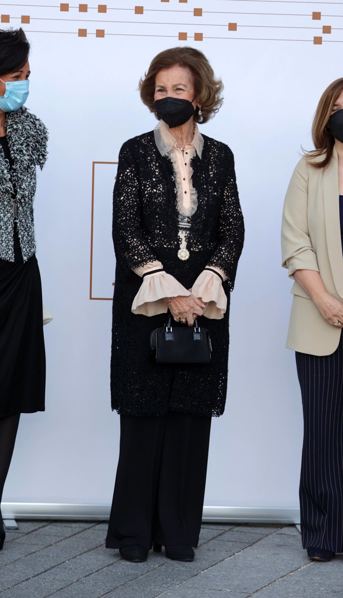 Para esta ocasión, la Reina Sofía ha elegido un look de lo más original, si ayer llamaba la atención por la blazer primaveral que llevaba, hoy nos ha enamorado con una camisa con chorreras en la zona de los botones, volantes en los puños, cuellos semitransparentes y una cenefa negra de encaje en la cintura. Sin duda, la Reina sigue cuidando al detalle cada una de sus apariciones.