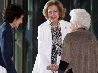 En esta ocasión, doña Sofía se reencontraba con la hermana del rey Juan Carlos, la infanta Margarita, con la que demostró conservar una amistad de lo más especial. Muy cercanas y cariñosas, ambas se saludaron a su llegada al Museo Nacional Centro de Arte Reina Sofía donde tuvo lugar el concierto.Apostando por la sobriedad y sencillez que le caracteriza, la madre del rey Felipe VI lució para la ocasión un elegante traje en color blanco con blusa de estampado 'animal print' y varios collares de colores con los que mostró una vez más su gusto por las joyas. Entre los asistentes, también otros rostros conocidos como Alberto Ruíz Gallardón o Sheikha Hind Bint Hamad Al Thani, Vicepresidenta y CEO de Qatar Foundation.