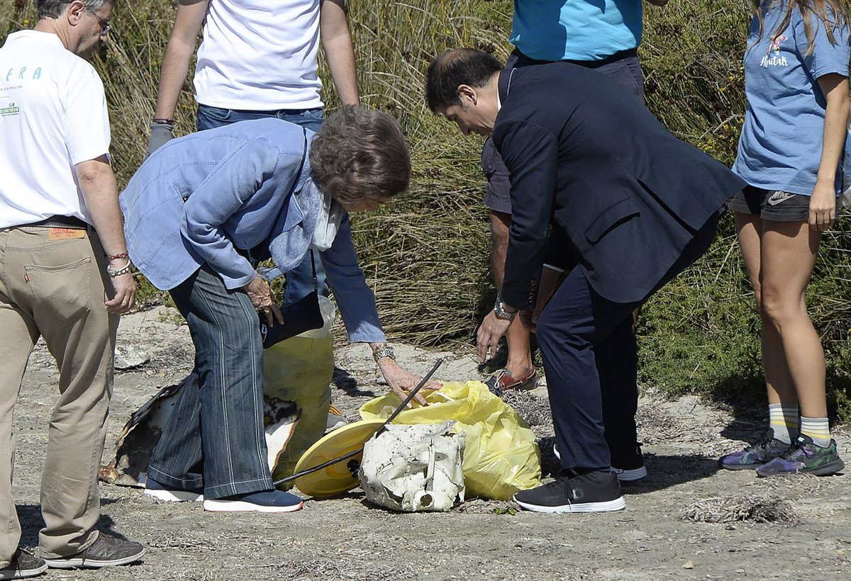 La Reina Sofía ha mostrado una vez más su cara más solidaria y responsable con el medio ambiente, en esta ocasión, lo ha hecho participando en una de las batidas organizadas por la campaña 1m2 por las playas de Ecoembes y SEO/Birdlife.