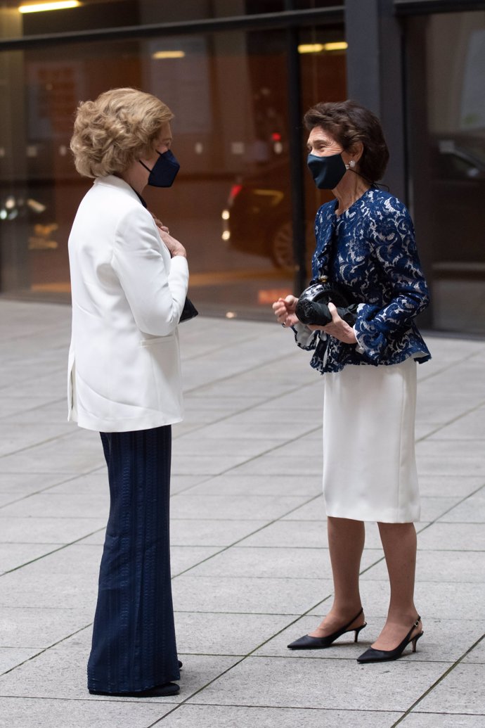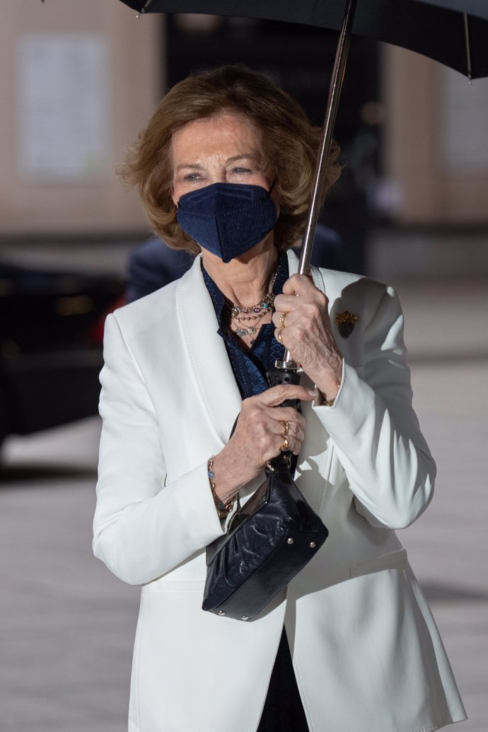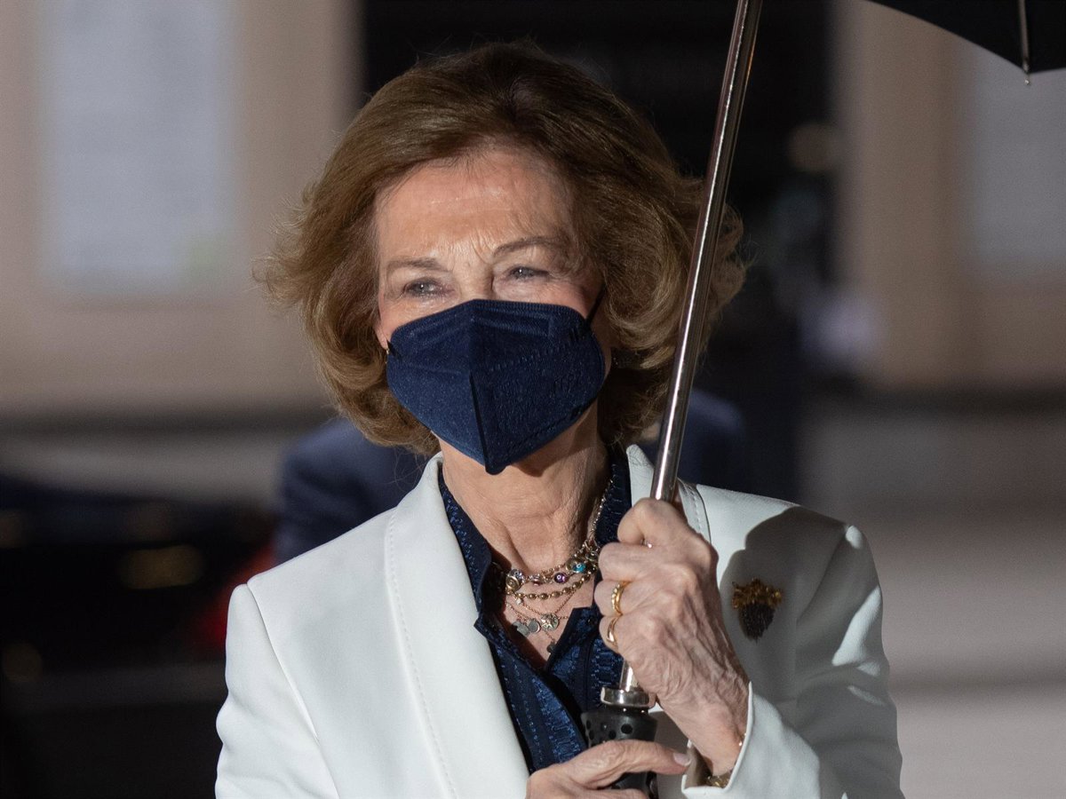Vacunada con la pauta completa contra la Covid-19, la reina Sofía tendrá que hacer frente a una agenda repleta de compromisos profesionales durante esta semana donde viajará el próximo viernes hasta Mérida para disfrutar de otro concierto en el Teatro Romano, con motivo de la celebración de las Ciudades Patrimonio.Con las primeras gotas de lluvia en Madrid, en esta ocasión la reina Sofía llegaba al concierto sin la compañía habitual de su hermana Irene y luciendo un conjunto de dos piezas en azul marino que combinó con blazer en blanco para protegerse de la bajada de temperaturas en la ciudad durante estos días y que ya le habíamos podido ver durante estos días en su país natal.