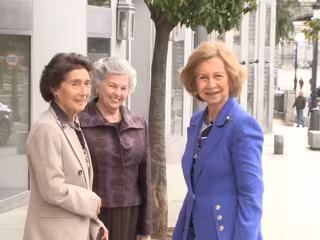 De lo más sonriente, la Reina ha saludado a su llegada con dos cariñosos besos a Ana de Orleans, con la que mantiene una estrecha relación desde hace décadas, y a Paloma O'Shea -Presidenta de la Escuela Superior de Música Reina Sofía- antes de acceder a la muestra, donde se ha reencontrado con los hijos de la artista, Pedro, María, Cristina e Inés de Borbón-Dos Sicilias, y con algunos de sus nietos, a los que ha abrazado con un cariño casi fraternal.
