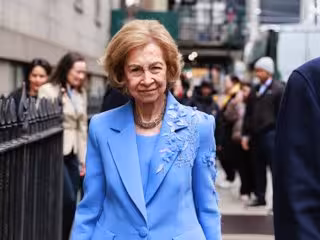 Siempre impecable, la Reina Emérita ha tirado de fondo de armario en su primera jornada de viaje en Nueva York y ha recuperado el favorecedor traje de pantalón que estrenó en la boda de Teresa Urquijo y José Luis Martínez Almeida en abril de 2024. Un dos piezas del diseñador Alejandro de Miguel en color azul cielo vibrante que destaca por los bordados con motivos florales y vegetales en la chaqueta, dando una nueva lección de elegancia en su regreso a la ciudad de los rascacielos.