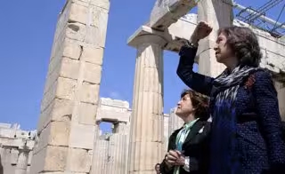 La Reina visitó el Acrópolis, uno de los lugares más importantes de la ciudad, donde participó en las conferencias sobre la relación entre la Corona de Aragón y Atenas.