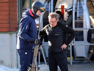 Sonriente y de lo más relajado, el Rey Felipe nos ha dejado ver su lado más cercano este domingo antes de coger el telesilla para disfrutar de su tercera y última jornada de esquí, cuando se encontró con un amigo con el que charló de lo más cómplice después de chocarle mano en un gesto tan espontáneo como divertido. Con un conjunto en color azul marino con detalles rojos, el monarca ponía así el broche de oro a un fin de semana muy especial.