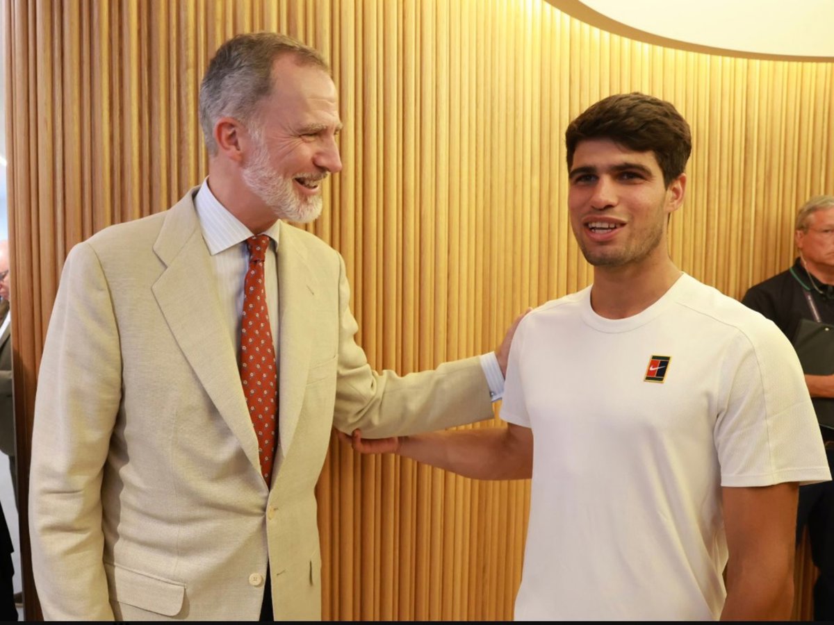 "El Rey ha felicitado a Carlos Alcaraz tras la final de Wimbledon 2025 por su gran participación en el torneo. ¡Gracias, Carlos Alcaraz! Has hecho que disfrutemos de otra final vibrante dando lo mejor de ti", es el texto con el que la Casa de Su Majestad ha acompañado a las instantáneas de Don Felipe y Carlos juntos.