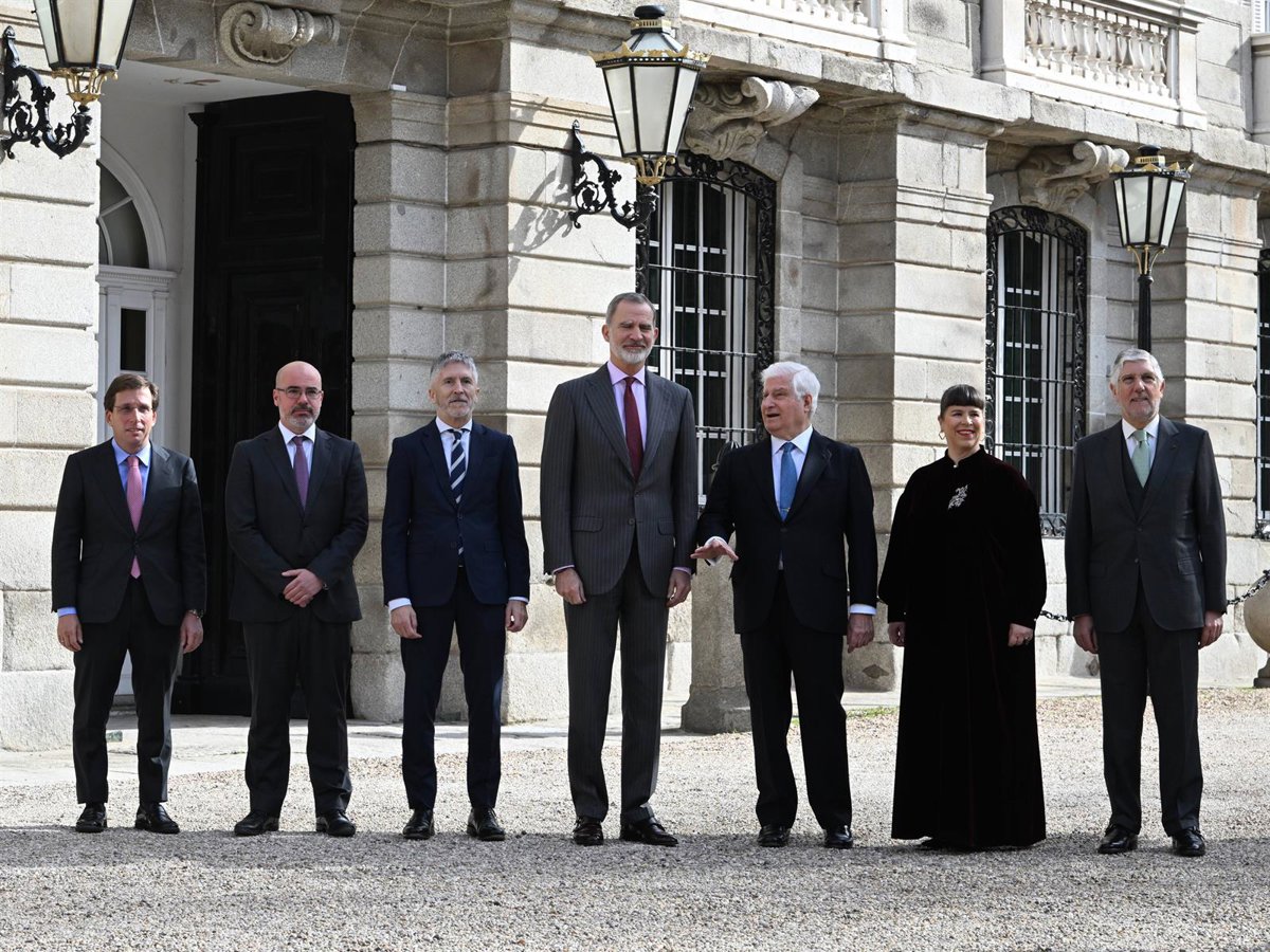 El Rey Felipe y el duque de Alba, Carlos Fitz-James Stuart, acompañados por otras autoridades como el alcalde de Madrid José Luis López-Almeida, o el Ministro del Interior Fernando Grande Marlaska, además de la artista Joana Vasconcelos, han presidido la inauguración de la muestra, a la que como no podía ser de otro modo han acudido muchos miembros de la familia Alba.