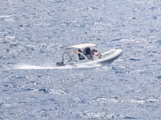 Acompañado por cuatro hombres, el Rey Felipe se ha dejado ver vestido de manera informal, con un polo azul oscuro y lo que parece un bañador o pantalón deportivo, gafas de sol y gorra por la bahía de Palma antes de montarse en un barco para adentrarse a las aguas del Mediterráneo.