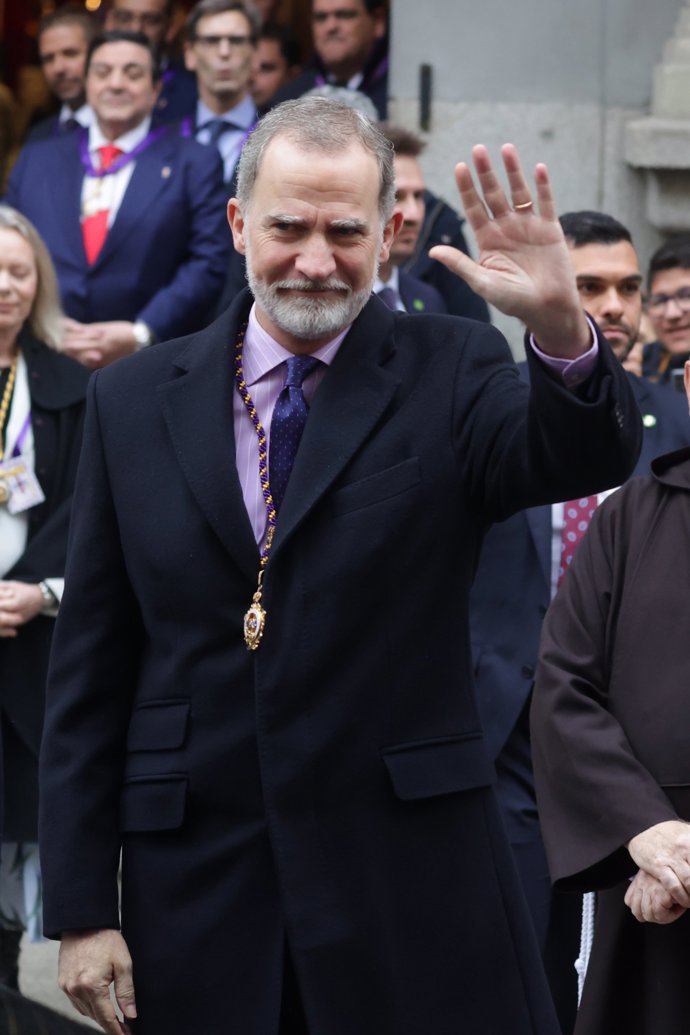 En 2024, Don Felipe volvía a cumplir con esta tradición y a besar el pie del Cristo de Medinaceli después de una ausencia de 6 años. Y este viernes, para sorpresa de muchos que esperaban a la Emérita, ha sido el Monarca el que ha hecho su aparición en la Basílica minutos después de las 11.00 de la mañana entre vítores y aplausos a pesar de la lluvia que ha ensombrecido este acto de carácter privado ineludible para la Familia Real.