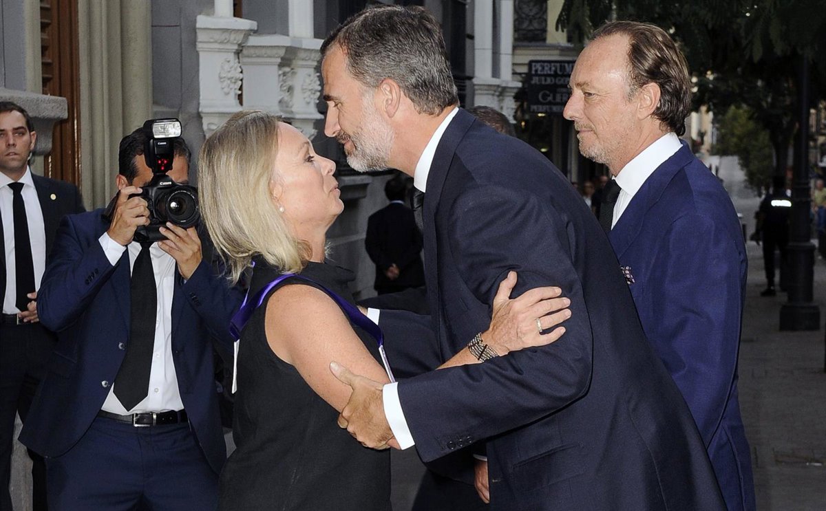 Don Felipe coincidió con su excuñado Jaime de Marichalar y acudió acompañado por el jefe de la Casa del Rey, Jaime Alfonsín. A su llegada al templo sagrado, el Rey saludó a los dos hermanos del fallecido, Pablo y Flavia, mientras sus hijos Victoria, duquesa de Ofalia, de 19 años, y Alexander de Hohenlohe, marqués de Navahermosa, de 17, esperaban dentro de la iglesia.