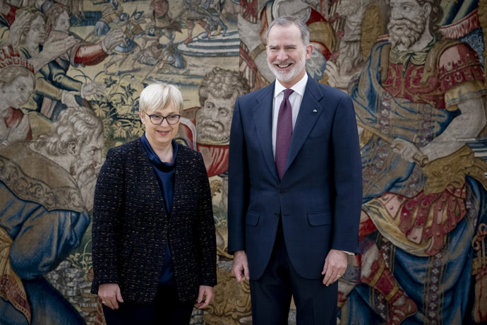 Puntual a las 10.00 horas, el Monarca ha recibido en el Palacio de la Zarzuela a la presidenta de la República de Eslovenia, Natasa Pirc Musar, con motivo de su visita a nuestro país para participar en el segundo Diálogo GWL Voices, una plataforma para analizar la realidad geopolítica actual y explorar soluciones en las que las mujeres actúen como agentes de transformación.