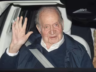 El monarca se ha dejado ver saliendo de la casa de su íntimo amigo Pedro Campos donde se ha alojado estos días pasadas las 16h en el coche de este y saludaba cariñosamente a la prensa que se encontraba en las inmediaciones levantado la mano hasta en dos ocasiones y con una sonrisa en el rostro.