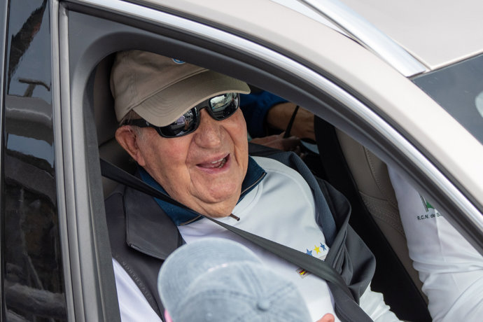 El padre del Rey Felipe VI aterrizaba el pasado jueves en el aeropuerto de Vigo en su cuarta visita del año a España, en la que manteniendo un perfil bajo no ha competido al timón de 'El Bribón', pero sí ha arropado a su tripulación siguiendo desde la lancha Cristina la Regata Hotel Carlos I Silgar, última prueba puntuable para el Trofeo Xacobeo de la categoría de 6M.