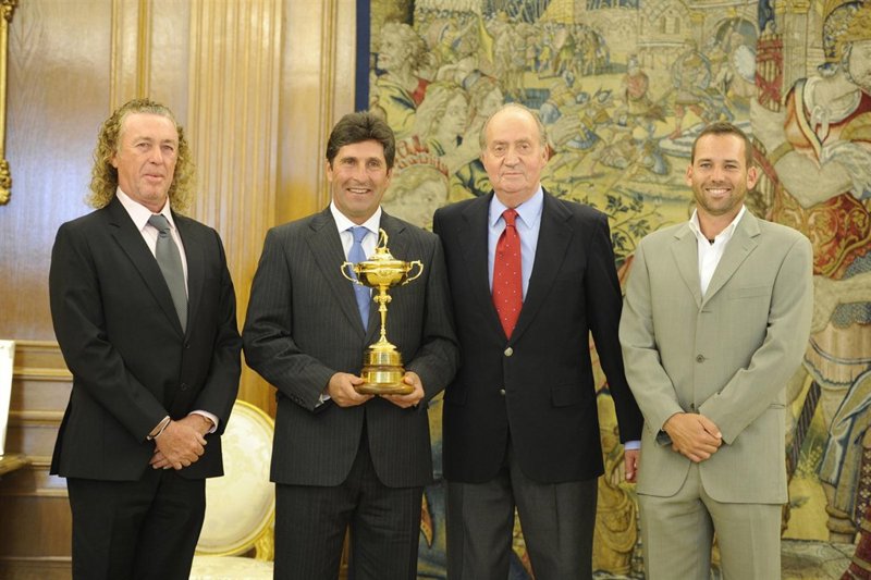 Don Juan Carlos recibió el pasado martes en audiencia a los deportistas españoles José María Olazábal, Miguel Ángel Jiménez y Sergio García que han formado parte del equipo Europeo de la "Ryder Cup" 2012.