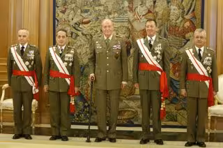 Don Juan Carlos recibió en audiencia, con motivo de su pase a la reserva, a Luis Villanueva Barrios, teniente general del Cuerpo General del Ejército de Tierra; Francisco Puentes Zamora, teniente general del Cuerpo General del Ejército de Tierra, jefe del Mando de Adiestramiento y Doctrina del Ejército de Tierra; Alfredo Cardona Torres, teniente general del Cuerpo General del Ejército de Tierra, comandante del Mando Componente Terrestre Aliado en Madrid, y José Muñoz Muñoz, teniente general del Cuerpo General del Ejército de Tierra, inspector general del Ejército de Tierra.