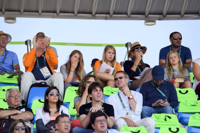 Se pudo ver a Guillermo y Máxima de Holanda junto a sus tres hijas en las gradas, mientras disfrutaban en el centro olímpico ecuestre. Justo detrás de ellos se encontraba Carlos Gustavo de Suecia.
