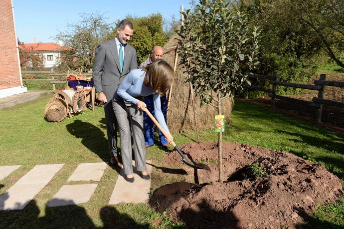 Más tarde, los Reyes se han puesto manos a la obra ayudando a uno de los vecinos de la localidad a plantar un manzano. Unas imágenes donde no han faltado los gestos de cariño hacia todos los ciudadanos de Poreñu.