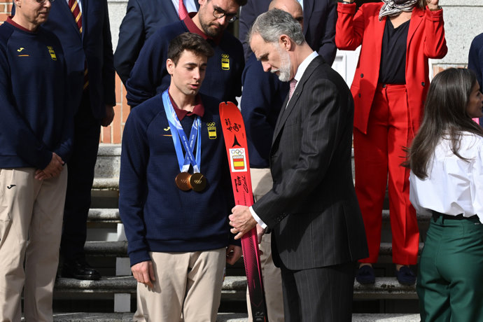 Siempre al lado del deporte español, don Felipe y doña Letizia han recibido a un total de 20 deportistas que han obtenido un palmareés histórico en los Juegos Olímpicos con tres medallas en esquí de montaña. Entre ellos, Oriol Cardona Coll logró el oro olímpico en la prueba de esprint masculino, Ana Alonso obtuvo la medalla de bronce en el esprint femenino de la misma disciplina y juntos lograban el bronce en el relevo mixto de esquí de montaña.