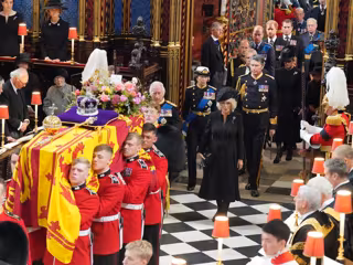 Siguiendo un protocolo férreo y medido al milímetro, el féretro con los restos mortales de la Soberana, abandonaba a las 11.30 horas Westminter Hall - donde en los últimos días han sido decenas de miles de personas las que han pasado por su capilla ardiente - para comenzar su viaje final hasta la Abadía de Westminster. El ataúd, cubierto por el Estandarte Real, la corona del Estado Imperial, el cetro de la soberana y una corona de flores multicolores, iba seguido por los hijos de Isabel II, el Rey Carlos III, la Princesa Ana, el Príncipe Andrés y el Príncipe Eduardo. Inmediatamente detrás, el Príncipe Guillermo, el Príncipe Harry y el hijo de la Princesa Ana, Peter Phillips, además de otros familiares directos como Tim Lawrence, Lord Snowdon o el duque de Gloucester.