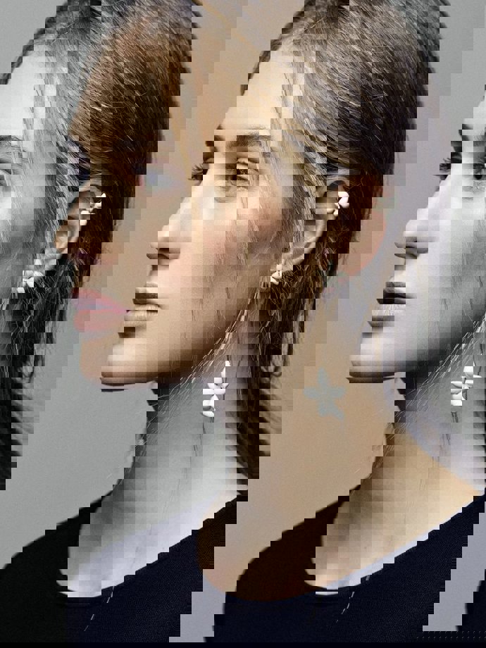 La colección completa consta de diez piezas: dos collares, un anillo, un brazalete, una diadema y cinco modelos de pendientes, todos ellos elaborados en plata bañada en oro y esmaltados en blanco. La Reina tiene los pendientes más pequeños que tienen un precio de 65 euros.