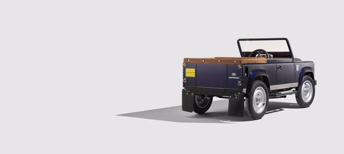 El prototipo destinado al Salón de Frankfurt ha sido meticulosamente fabricado a mano en el Reino Unido. Una unidad exclusiva construida a escala con alta precisión para incorporar todas las características distintivas del Defender, como la placa protectora, las barras cilíndricas de funcionamiento, los neumáticos todoterreno, las aletas y el guardabarros.