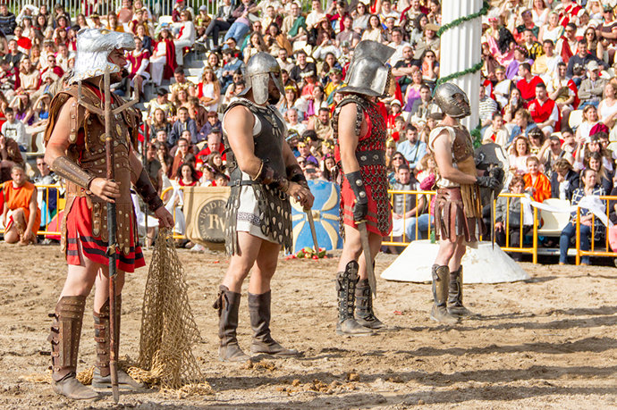 El pasado agosto más de 5.000 personas acudieron a la plaza de toros para ver a los gladiadores por primera vez en Benidorm. "Hacemos un guiño al pasado romano de la costa de Alicante", apunta Luis Leal, director de Legend Especialistas. Este show de lucha escénica y equitación llega a Benidorm en colaboración con su Asociación de Moros y Cristianos. El verano alicantino vuelve a citarse con la antigua Roma.