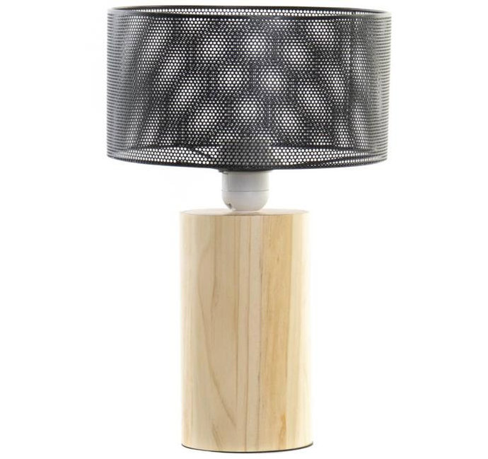 Rejilla en metal negro y base en madera color natural. 100% industrial, ideal para una mesa de trabajo o en pareja en una consola en la entrada de casa.