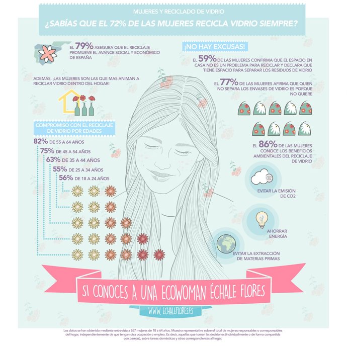 ¿Y por qué dirigido especialmente a las mujeres? Además de porque se acerca el Día Internacional de la mujer, porque según un estudio de Ecovidrio, nosotras somos las que más nos inmiscuimos en el reciclado. El 72% siempre recicla los residuos de envases de vidrio y el 79% es consciente de la importancia del gesto para la evolución social y económica del país. Unos datos muy sugerentes que nos descubren el lado más solidario de las mujeres... las Ecowoman.