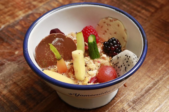 Una de las cosas que más llamó la atención fue la creación de una croqueta de yogurt. Sí, sí, como lo están leyendo... ¡lo nunca visto! Paco Roncero y su pinche consiguieron hacer una croqueta de yogurt elaborada de la misma forma que una normal pero rebozada con cereales.